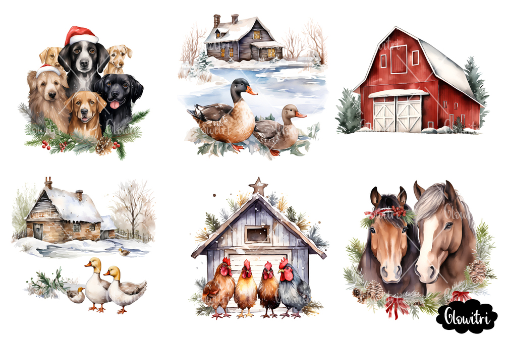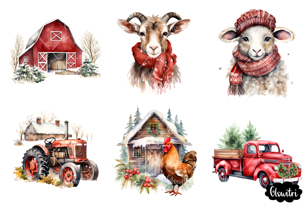 This beautiful christmas Farm sublimation clipart set includes 18 cliparts in PNG format with transparent background.