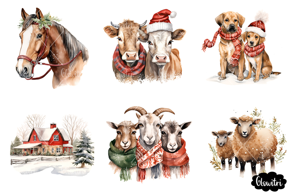 Bring a touch of rustic Christmas charm to your designs with these adorable sublimation cliparts showcasing a festive Christmas Farm theme.