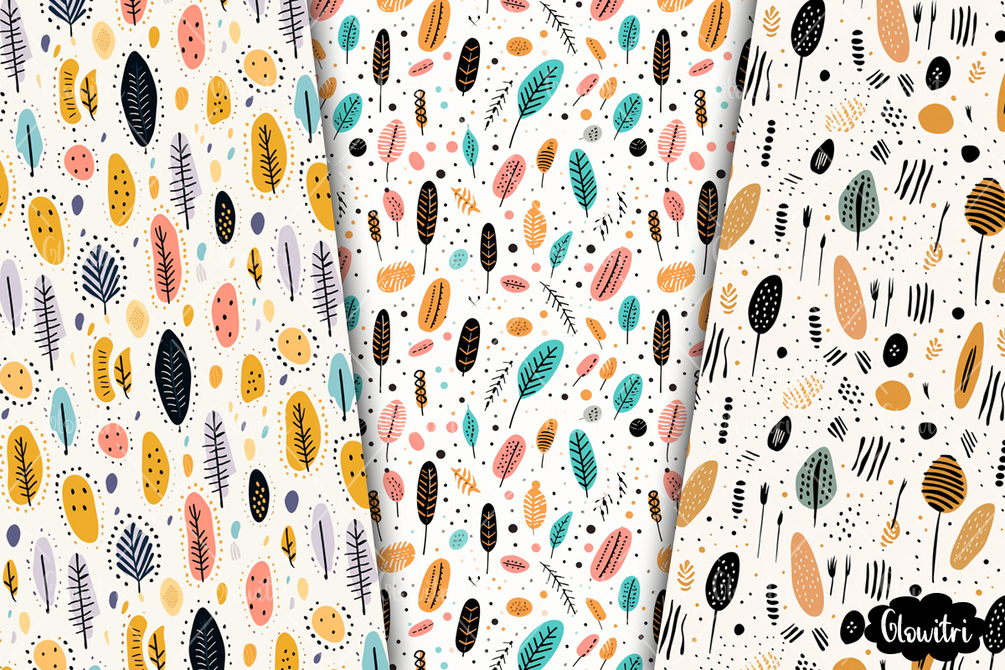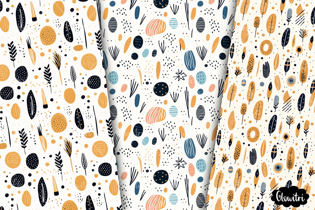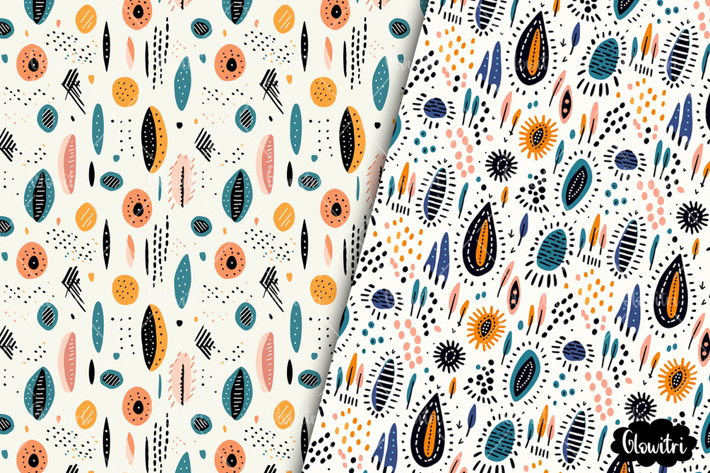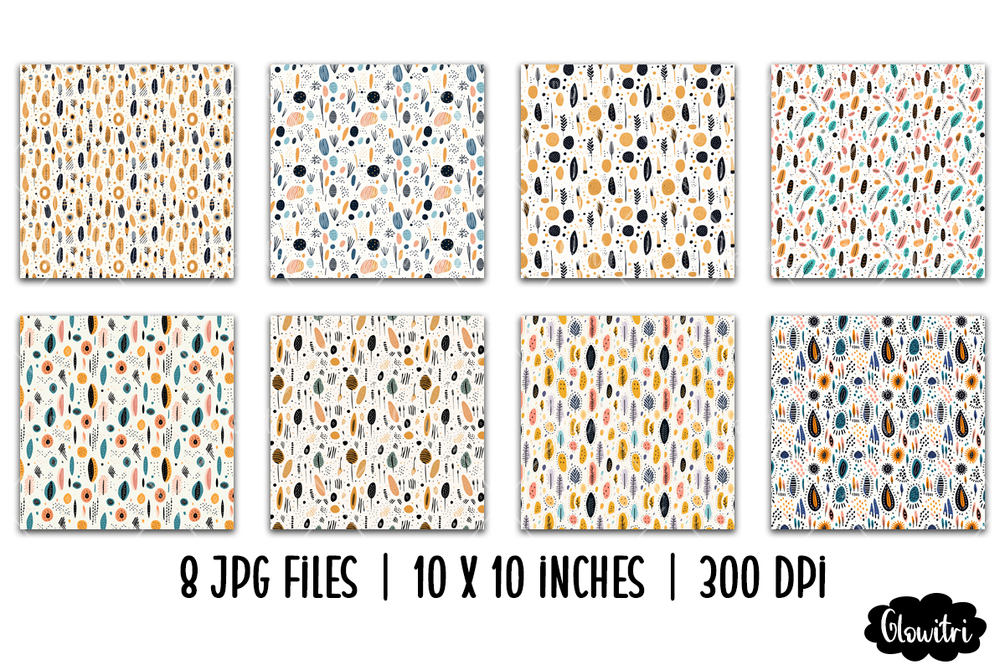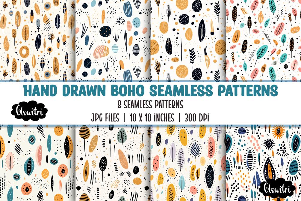 This Hand Drawn Boho Seamless Pattern set includes 8 patterns in JPG format.